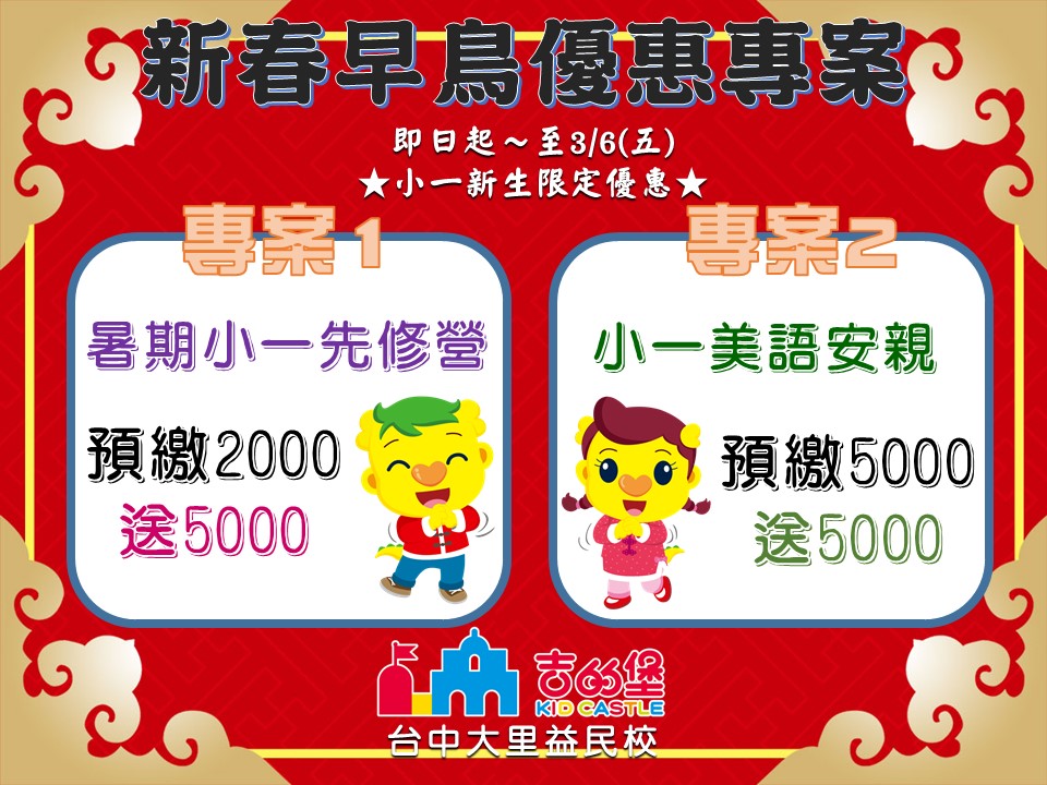~~115學年小一早鳥優惠開跑啦~~